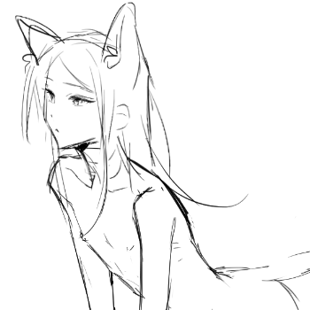 变成人外表看起来是“只有女性生殖器的”男性,176,中分半长黑发,宝蓝色眼睛,头发偏长到肩膀下一点,平时散下,到后期越来越像人的时候会扎起来